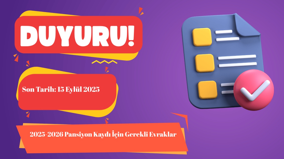 Okulumuz Pansiyonunda Barınmak İçin Talep Edilen Evrakların Duyurusu